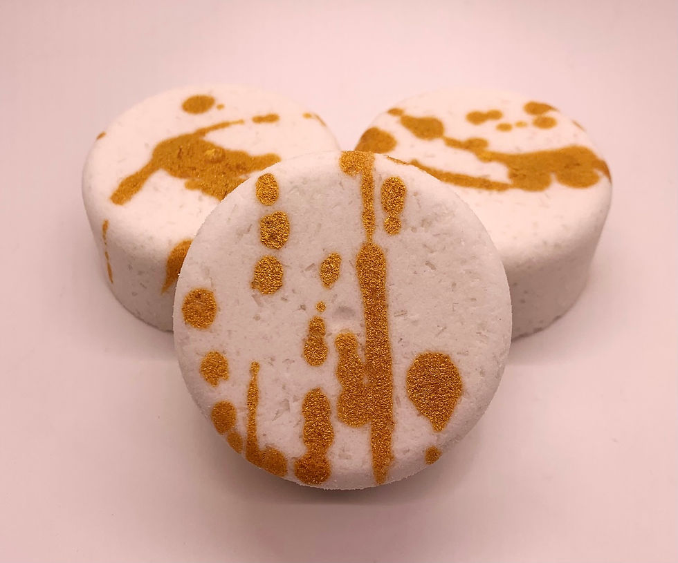 Relax, soak and unwind. Need a great way to enhance your bath? Sooth aching muscles? Hydrate you skin? Indulge with one of our fizzy bath pucks. Made with Sodium Carbonate, Citric acid, magnesium sulfate, grapeseed oil, slsa, polysorbate 80, kaolin clay, cream of tartar, fragrance and skin safe mica for colour.